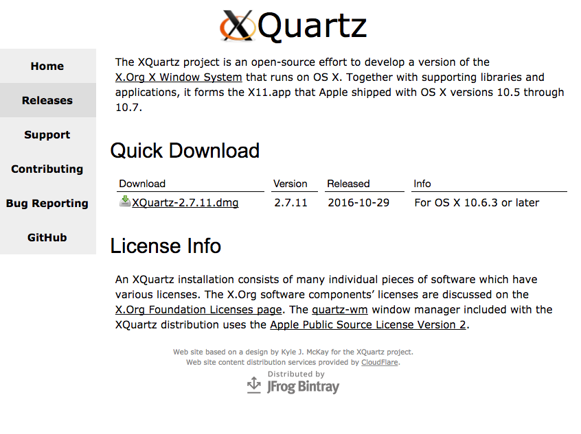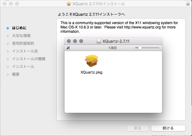 1. CLIDE Mac 版は GUI に XQuartz を使用しているため、はじめに XQuartz をインストールする必要があります。次のサイトから XQuartz のプログラムをダウンロードします。