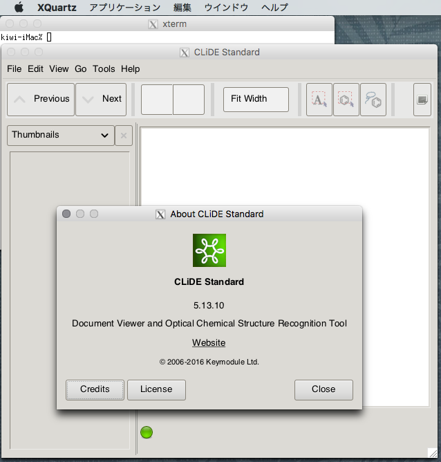 最初に XQuartz が起動し、つづけて CLiDE が起動します。