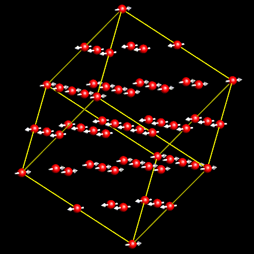 対称性を使用する場合は、同等な各セットの1つの原子の座標を入力するだけです。230 のすべての空間グループと 32 の結晶点グループの対称要素がファイルにあり、番号または標準記号で呼び出しできます。非結晶の対称 (十二面体)、正二十面体など) も使用できます。補助プログラム SYMGRP が、任意の点グループに完全な対称行列を導きます。また、ATOMS は、構造の磁気その他のベクトル面の図示について Shubnikov 対称をサポートします。