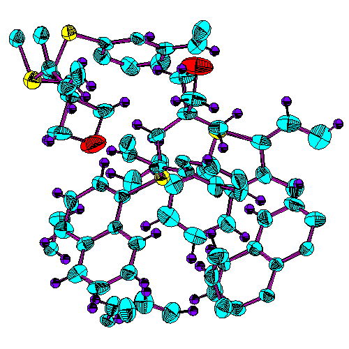 これらの表現の任意のタイプを一つの図面内でお互いに混合させてもかまいません。「3D (三次元)」表示モードでも同じ表現が利用できます。さらに、「熱楕円」モードがあります。これは ORTEP (Carrol K. Johnson による) と同じ方法で原子と結合を作図するものです。