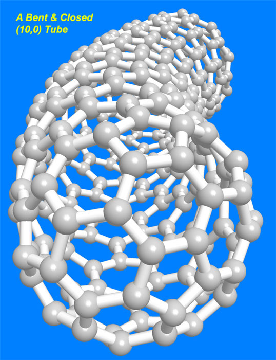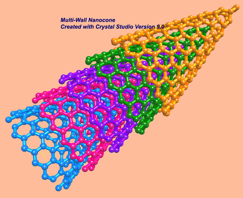 カーボン (窒化ホウ素または他の元素) ナノチューブおよびナノコーンを作成し、ナノチューブを歪めることもできます。
