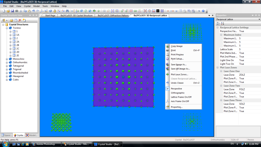 逆格子を開裂し、様々な次数のラウエ帯を調べたり、各次数のラウエ帯にある反射スポットの面指数や面間隔、構造因子を見つけることができます。