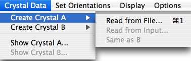 定義済みの Crystal A または B を読み込むためのメニューです。ファイルから読み込んだり、直接入力、あるいはすでに読み込み済みの構造を指定することができます。