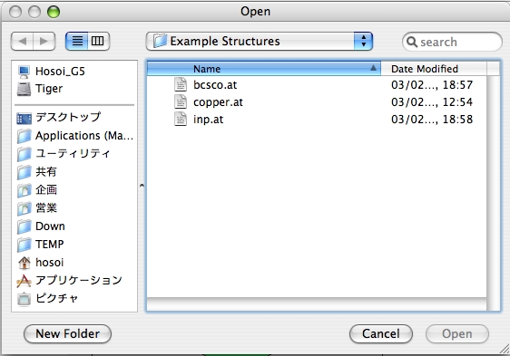 ファイルのデータを読み込む場合は、MacOSX 標準のファイルダイアログが表示されます。Option キーを押しながら Read from File… コマンドを選択すると、EMS ファイルを読み込むことができます。ただしファイル名のチェックはなく、スーパーセルのみです。