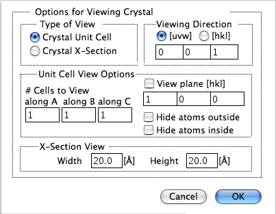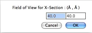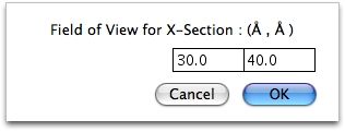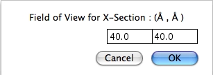 ダイアログの入力が終わったら OK ボタンを押し、Display|Draw XSection… メニューコマンドをクリックして、視野の範囲を 30×40 (オングストローム) に設定します。