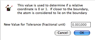 原子の相対座標が、どれだけ 0 または 1 に近いとき、境界 (0 と 1) にあるものとみなすか、設定します。通常は、0.001 に設定されています。