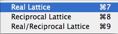 ポップアップメニューが表示されます。デフォルト設定は Real Lattice で、Reciprocal Lattice またはそれら両方を選択することができます。
