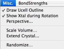 これとは異なる方法で構造を編集することもできます。1つの単位格子をスクリーン上に作成したら、回転ツールを使って格子を回転させます。情報ツールを使って原子をクリックすると、その情報が得ることができます。このとき、その値を変更したり原子の種類を変えることができます。変更した情報は原子リストに保持されます (基本原子リストではありません) 。これを Save Crystal A/B コマンドを使って保存しても、変更はファイルに保存されません。しかしながら、Option キーを押しながら保存すると、この原子リストも保存され、変更がファイルに保存されます。