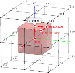 対象とする構造の第1ブリルアンゾーン (原点と逆格子点の垂直2等分面で囲まれた多面体) の Γ 点 (0,0,0) を始点、辺、頂点、または、面の中心といった対称性の高い点を終点に選びます 。ブリルアンゾーンの領域と対称性の高い点の座標は、構造の空間群によって変わります。