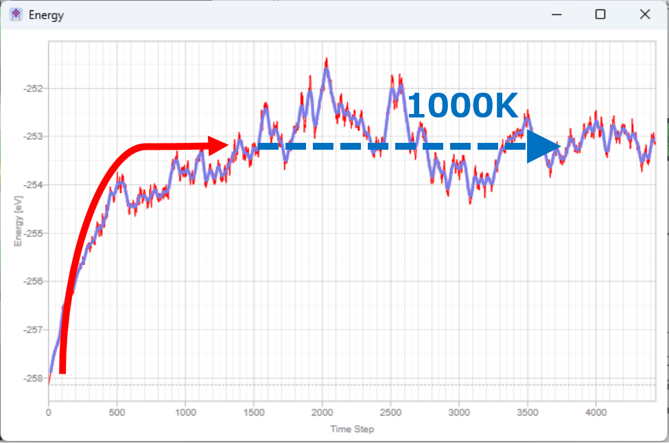 ▶処理中は温度が一定である点、および、焼なまし (annealing) プロセスは使わない点が構造最適化とは異なります。
