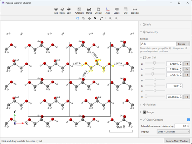 分子構造を結晶構造に置き換える際、パッキングの「トポロジー」、すなわち、分子の位置や方位や間隔を、文献や回折実験の結果など既知の情報と照らし合わせながら手動で探索するためのツールです。