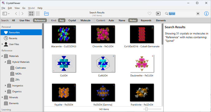 ▶CrystalMaker 11 のライブラリには、酸化物、ケイ酸塩、ハロゲン化物やリン酸塩といったその他の鉱物に関する数十のリソースが組み込まれています。