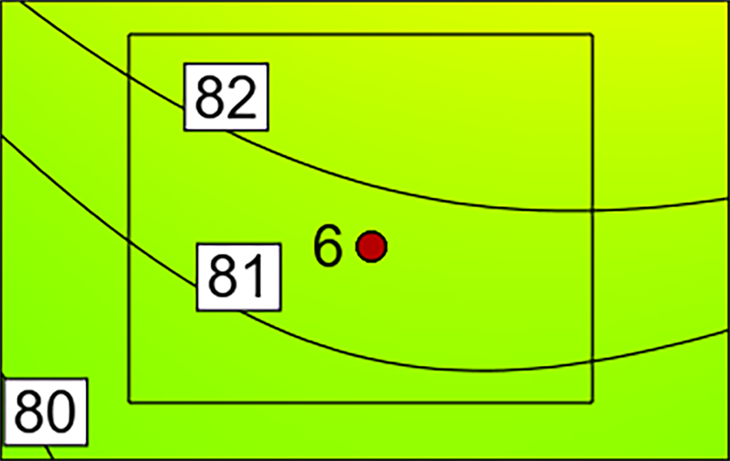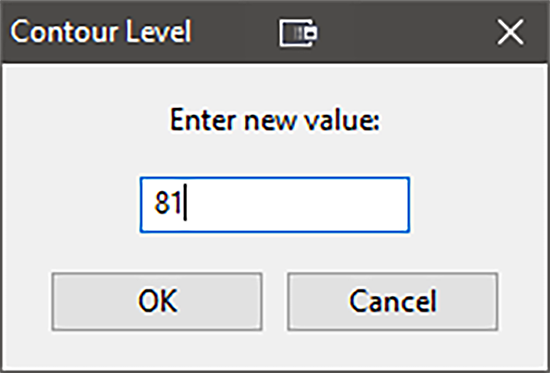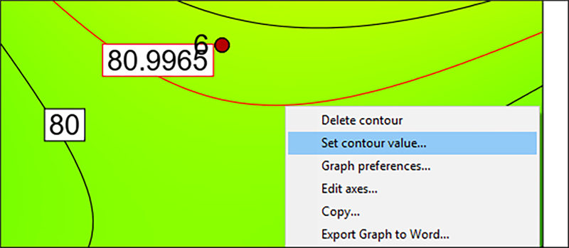 新しい等高線をクリックして強調表示します。それをできる限り 81 の近くまでドラッグします(マウスカーソルを等高線上に置き、左ボタンを押したままマウスを動かします)。正確な等高線レベルを得るために、先程ドラッグした等高線を右クリックします。Set contour value を選択し、81 と入力します。