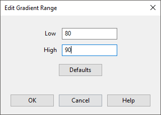 プロットの等高線に関しては、ひとまずこれで十分です。Graph Toolbar から “3D Surface” 表示に移動します。グラデーションの上で右クリックして “Edit Gradient Range…” を選択し、色の範囲を変更します。Low を「80」に、High を「90」に変更します。するとさらに色彩が豊かになって、相対的高さの情報が得やすくなることに注目してください。