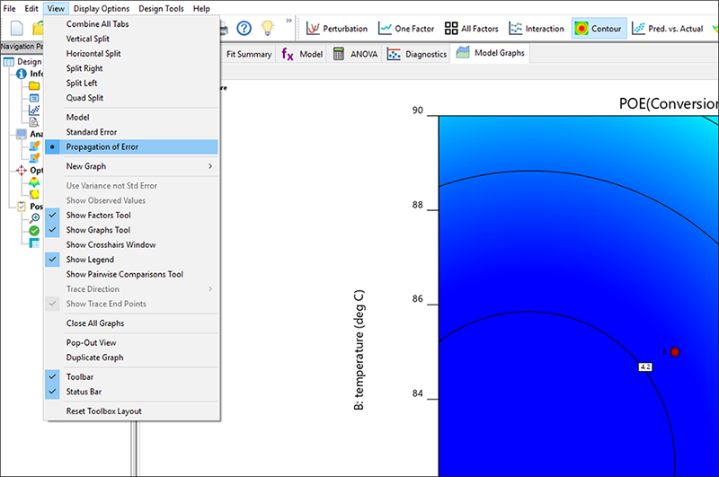 Design-Expert® ソフトウェアにデータを取り込む際、入力因子に存在する細かなばらつきが含まれる可能性があります。このとき、誤差の伝播(POE)プロットを作成することで、応答に対する誤差の伝わり方を画面上で確認できます。ばらつきの伝わりを最小化できる条件を見つけることで、因子の設定状態に左右されない堅牢なプロセスを編成できる訳です。このチュートリアルでは、応答曲面法(RSM)で計画された実験から POE を作成する方法を紹介します。