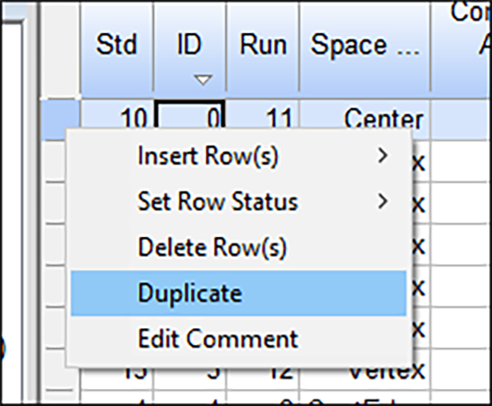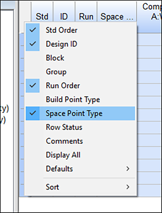 重心を複製して、この実験を仕上げましょう。 デザインレイアウトで左上列に Select column のヘッダーを右クリックし “Design ID” を選択します。元に戻り、Select 表示の Space Point Type 列を選択します。これは設計の構造を観察するのに非常に便利です。