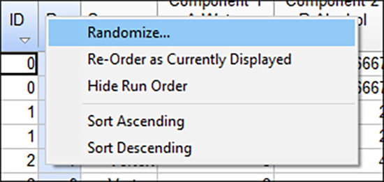 行を挿入、削除、または複製したあとは、Run 列のヘッダーを右クリックして “Randomize” を選択し、常に無作為化を実行するようにしてください。
