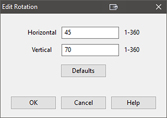 | ※ 注意 グラフを右クリックして、“Set Rotation” を選択し、3D 曲面プロットを任意の角度から簡単に表示させることができます。 ![]() 3Dプロットを回転させるコントロールウィンドウ 水平(“h”)および垂直(“v”)の座標を指定できることに注目して、この機能を試してみてください。その後、Default をクリックし、X を押して回転ツールを終了してください。 |