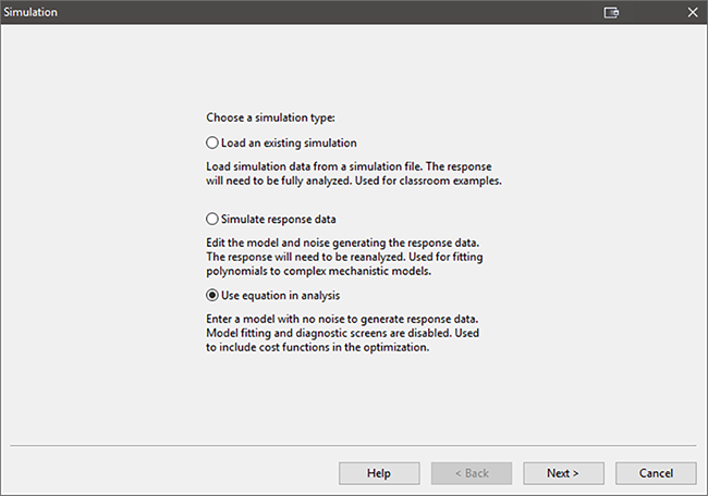 次に、新規応答列のヘッダーを右クリックして “Simulate” を選択します。それから “Use equation in analysis” を選択してください。
