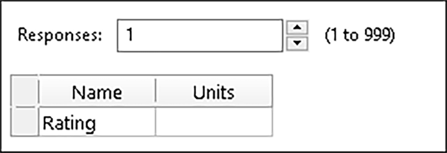 “Next” をクリックします。R1 の Name に「Rating」と入力します。この場合、100ポイントのスケールで測定され、高ければ高いほど良い味となります。