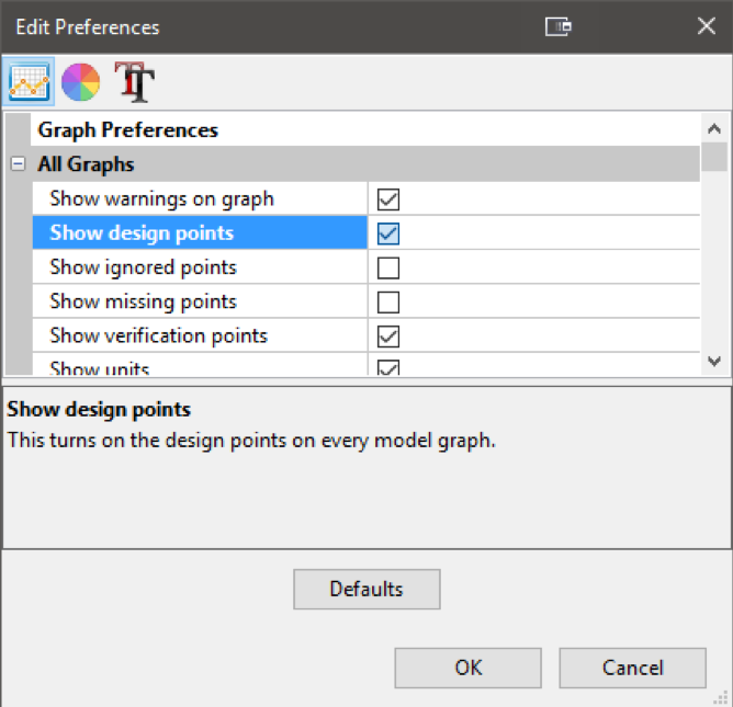 “OK” をクリックします。見た目はすっきりしましたが、少しやりすぎだったかもしれません!分かり易くするために、点を配置しなおすことにしましょう。もう一度グラフ上でマウスを右クリックして、“Graph Preferences” を選択します。今度は、“All Graphs” タブをクリックして、Show design points on graph オプションのチェックを入れます。