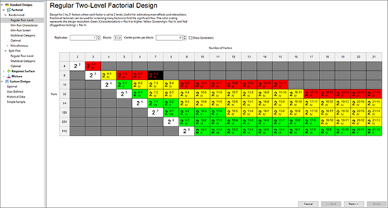 実験の分割には、Plackett‐Burman 計画法を使用する方も多いですが、このチュートリアルでは標準的な2水準アプローチ、すなわち、Design‐Expert® に用意された “Min Run”(最小試行)オプションを使用します。いずれのアプローチを採用するにせよ、分解能の低いこのような計画から導き出される効果をどのように解釈していいか分からず困惑する人がいるかもしれません。