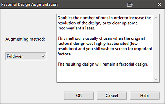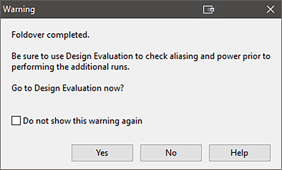 Design‐Expert の “Foldover” 機能は、どちらの折り重ねタイプでも、必要な計画ポイントを自動的に追加します。