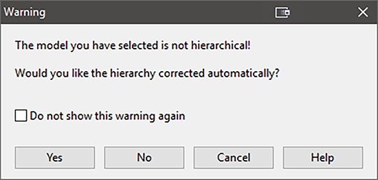 ソフトウェアは、モデルの階層構造に関する以下の警告を表示します。
