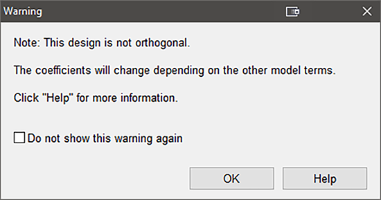 この事例では、すべての因子を折り重ねにするのが最良の選択ですので、“OK” をクリックして次に進んでください。以下の警告がプログラムに表示されます(どちらかと言えば提案ですが)。