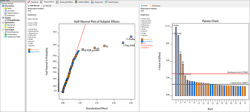 これで、分割法実験用にDesign-Expertソフトウェアが提供する2水準要因配置ツールの操作説明は終了です。 結果を保存してから、ポリメラーゼ連鎖反応(PCR)の最大値を最適化するために、プログラムが推奨するNumerical Optimizationを確認してください。 DOEが適切なツールを用いてできることは、非常に多岐にわたります!