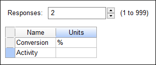 “Next” をクリックして、プルダウンリストから “2” を選択してください。次に、応答の Name と Units をそれぞれ以下のように入力してください。