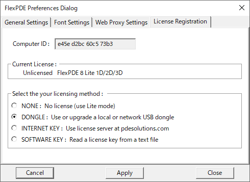 - 「FlexPDE Preferences Dialog」画面が表示されます。