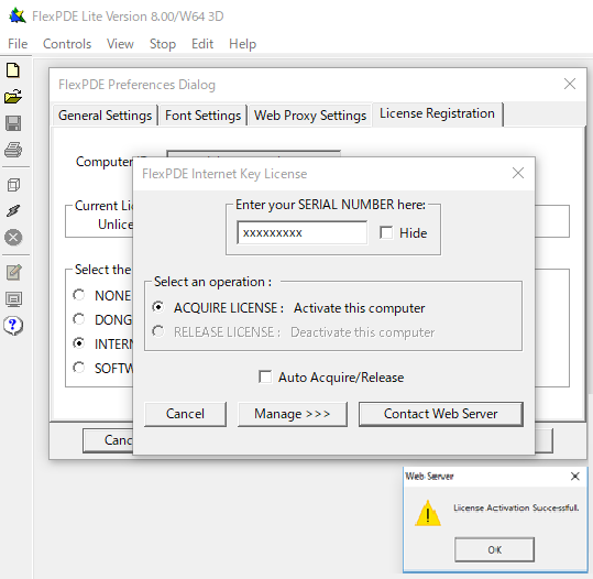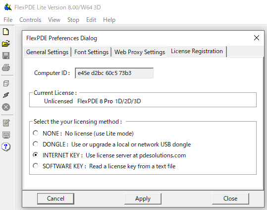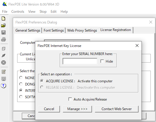 メニューの ” Help -> Register FlexPDE ” を選択します。