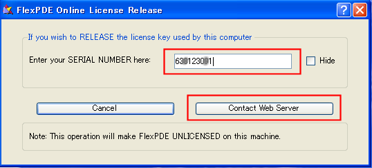 ※ 他の PC が「インターネット・キー・タイプのライセンス」を取得するには、先ずこの PC のライセンスを開放する必要があります。その「ライセンスの開放」手順を以下に示します。