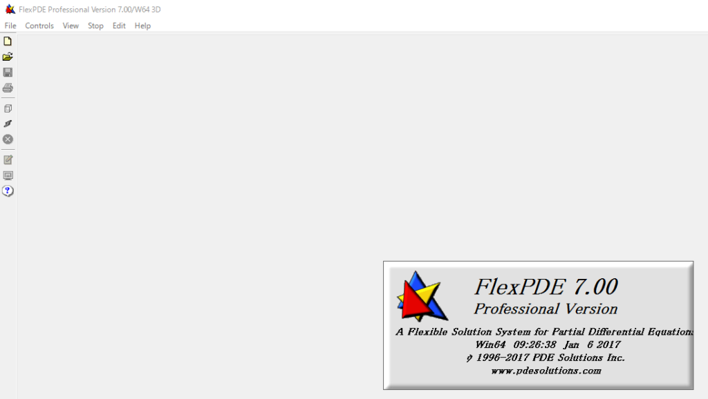 - 一旦、終了した場合、FlexPDE 7 のアイコンをクリックし、起動します。