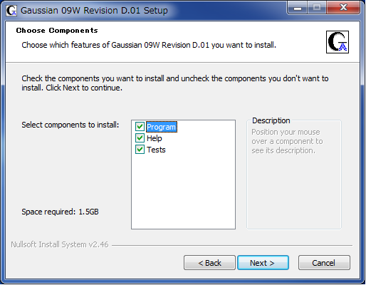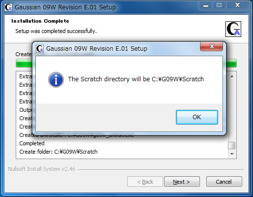 インストール先ディレクトリが C:\Gaussian 09W でよければ、
