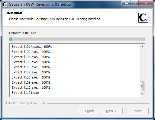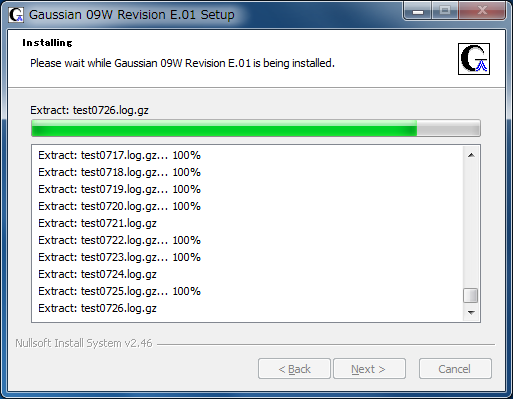 (アップデートの場合のみ)以前のリビジョンの Gaussian 09W の削除が開始されます。削除が終了したら「