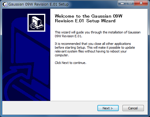 以前のリビジョンの Gaussian 09Wがすでにインストールされている PC でアップデートを行っている場合 →