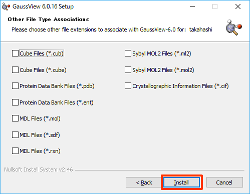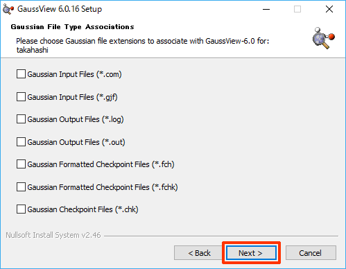 ※ 以下の説明に用いている画像は、Gaussian 16 W 6.0.16 を Windows 10 Pro にインストールしたときのものです。