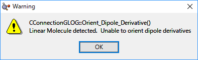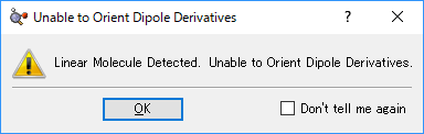 例えば、CO2 直線分子を計算した場合、上記 Warning が表示され、Show Dipole Derivatives Unit Vector が選択不可の状態になります。