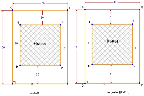 なお、Geometry Expressions で距離を記号として入力することは、ご覧のとおり数値を入力するのと何ら変わらずに簡単に行うことができる点に注目してください。入力が済んだら、建物の最大の面積を数式で求めることができます。