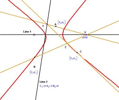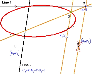 X を Line 1 に沿って動かすと、それに応じて Z も移動します。はっきりとは分かりませんが、以下に示すように Z によって円錐曲線がトレースされています。