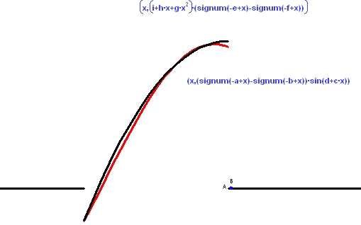 この例では、特定の窓における正弦関数に最もあてはまる近似となるように2次式の係数を動的に変更します。この作業が完了したら、学生はその後、窓の幅を広げてゆき、こうした近似が非常に限定された範囲にしかうまく行かないことを、言わば劇的な形で理解します。