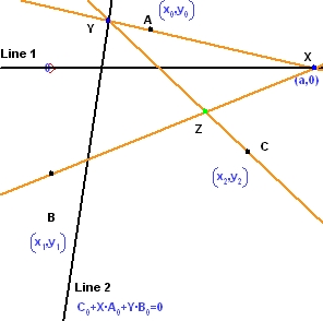 X を Line 1 に沿って動かすと、それに応じて Z も移動します。はっきりとは分かりませんが、以下に示すように Z によって円錐曲線がトレースされています。