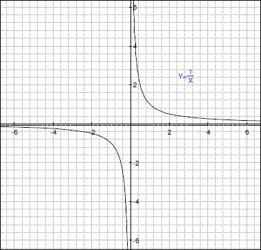 関数 y =1/x は関数族の親関数で、そのグラフは双曲線と呼ばれています。グラフは2本の漸近線を持っています。漸近線はグラフに近づきますが、決して接することのない線です。