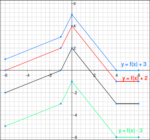 3. y =f (x) のグラフがあります。同じ軸で、y =f (x) + 2 のグラフを描いてください。グラフにラベルを付けるか、色分けしてください。