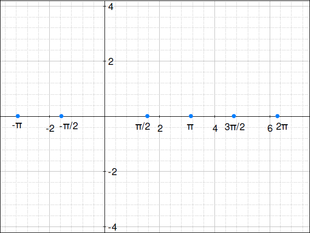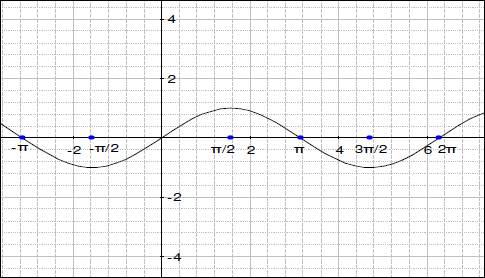 このユニットで調査する三番目の関数族は y = Sin (x) です。この関数は、パターンが一定の間隔で繰り返される周期関数であることを忘れてはいけません。正弦関数の場合、期間は 2π、または約 6.28 です。さらに、最大値 1、最小値 -1 で、直線 y =0(x 軸)中心軸を横切って振れます。