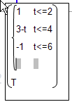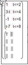 7. 次に、y 値についても同じ操作で、T パラメータを選択して区分関数アイコンを3回クリックします。グレーのボックス間を移動するには、キーボードの矢印キーを使うか、マウスで指定します。