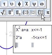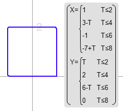 Geometry Expressions で利用できるすべての関数は、パラメトリック関数も含めて、区分型にすることができます。例えば正方形を考えて見ましょう。