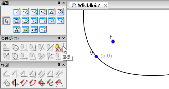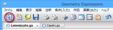 条件や作図を入力したり、演算結果を出力するには、この矢印を使ってまずはじめに図形の要素を選択する必要があります。